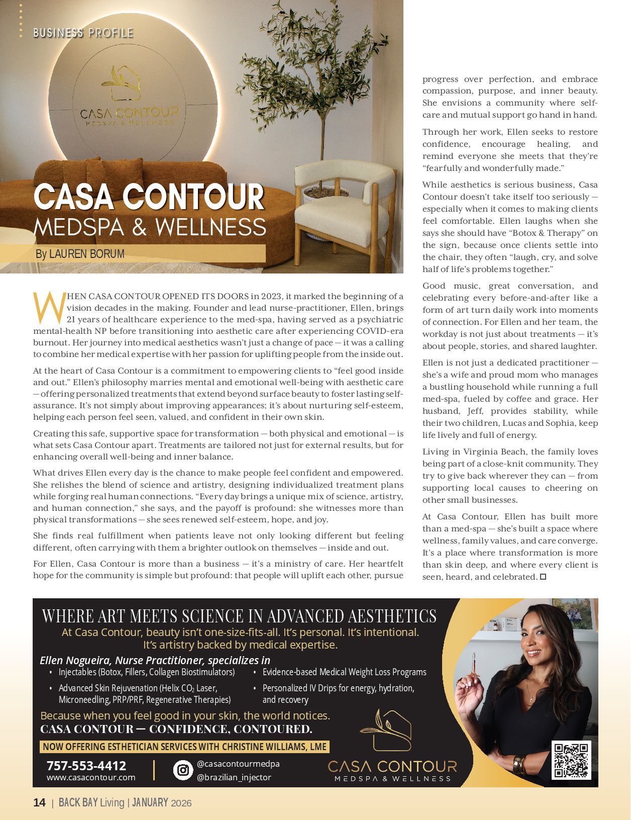 For Ellen, Casa Contour is more than a business — it’s a ministry of care. Her heartfelt hope for the community is simple but profound: that people will uplift each other, pursue progress over perfection, and embrace compassion, purpose, and inner beauty. She envisions a community where self-care and mutual support go hand in hand.